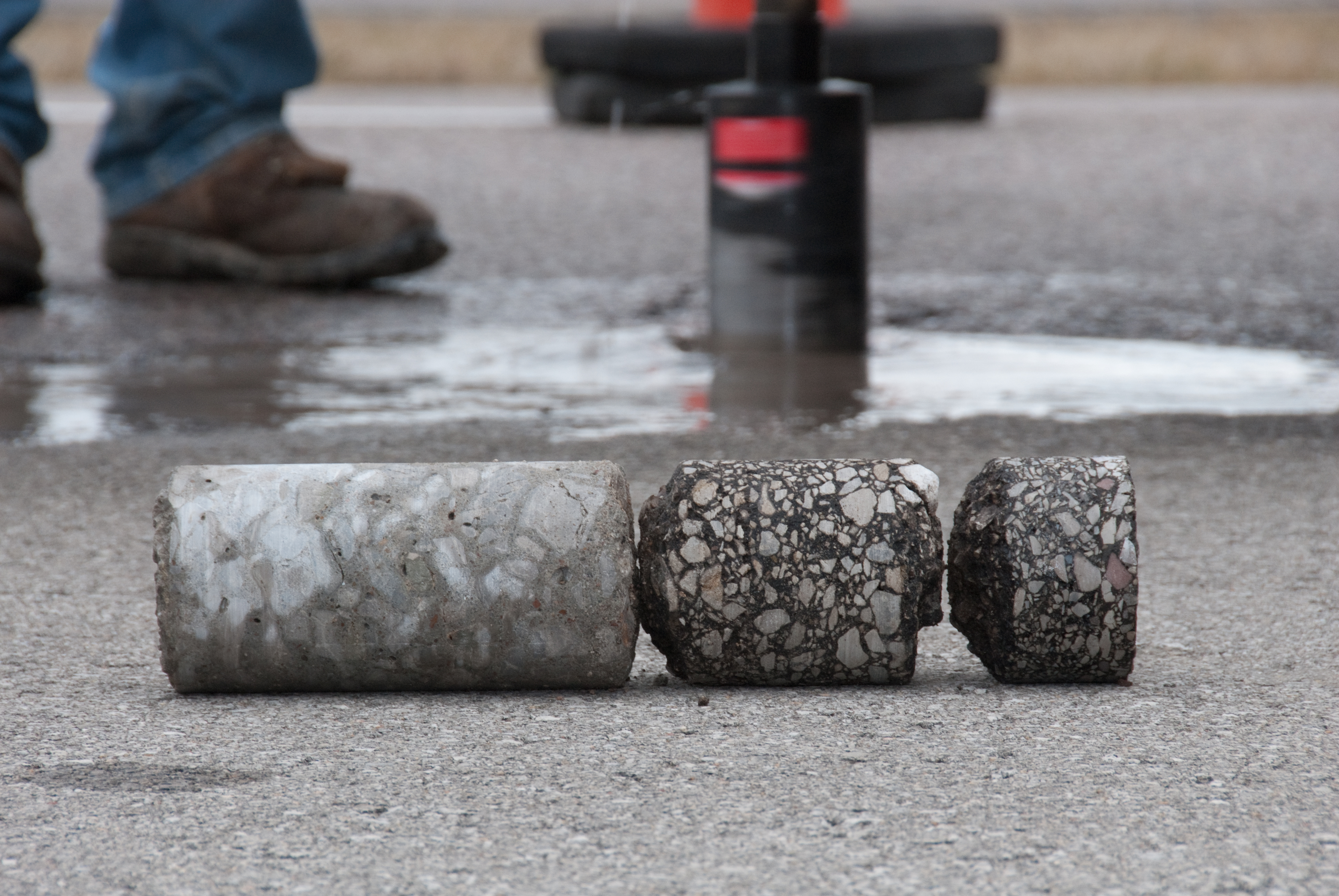 เป็นการเจาะคอริ่ง Coring เก็บตัวอย่างแท่งคอนกรีตบนถนน